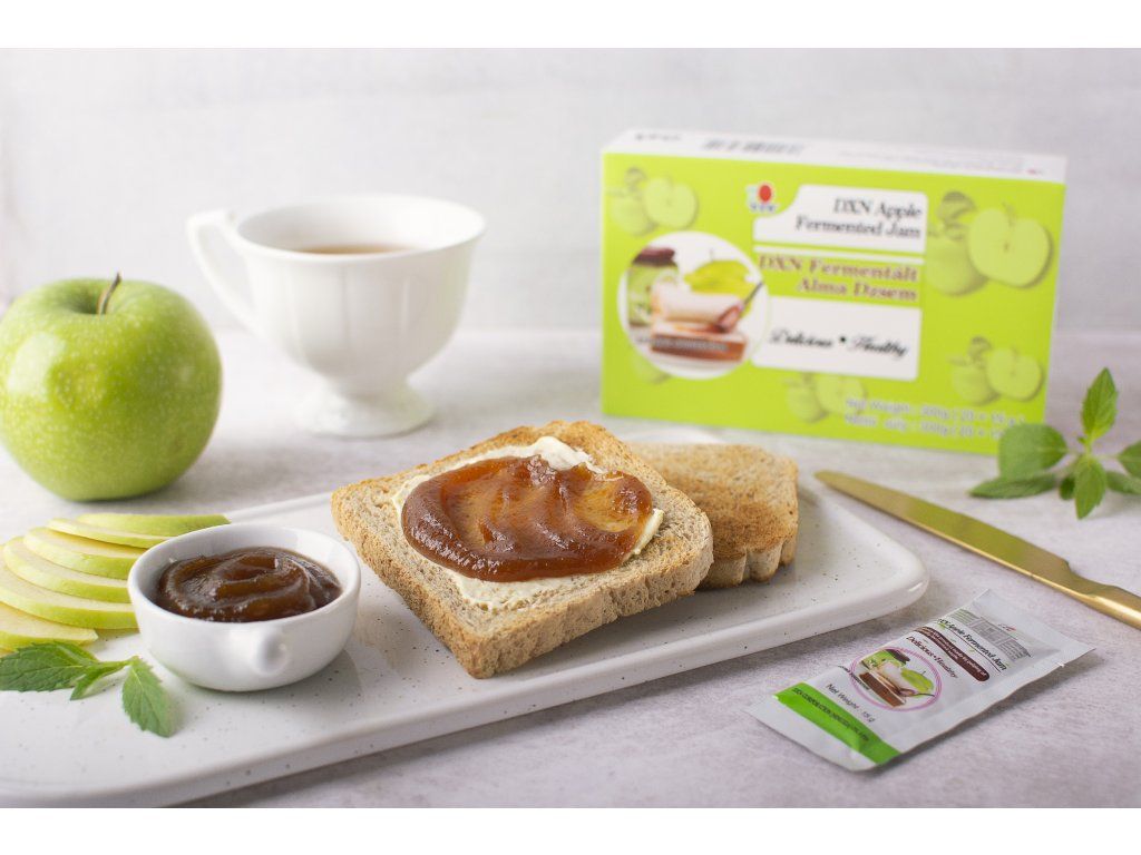 DXN Apple Fermented Jam - pasta sa vyrába z prirodzene fermentovaných čerstvých jabĺk a ďalších prísad. Je dodávaný v pohodlnom balení na jednorazové použitie a spotrebu, ktoré zabezpečuje čerstvosť výrobku. Je vynikajúca na použitie aj ako nátierka a po zmiešaní s vodou ako osviežujúci nápoj. Veľkosť balenia: 20 vrecúšok x 15 g