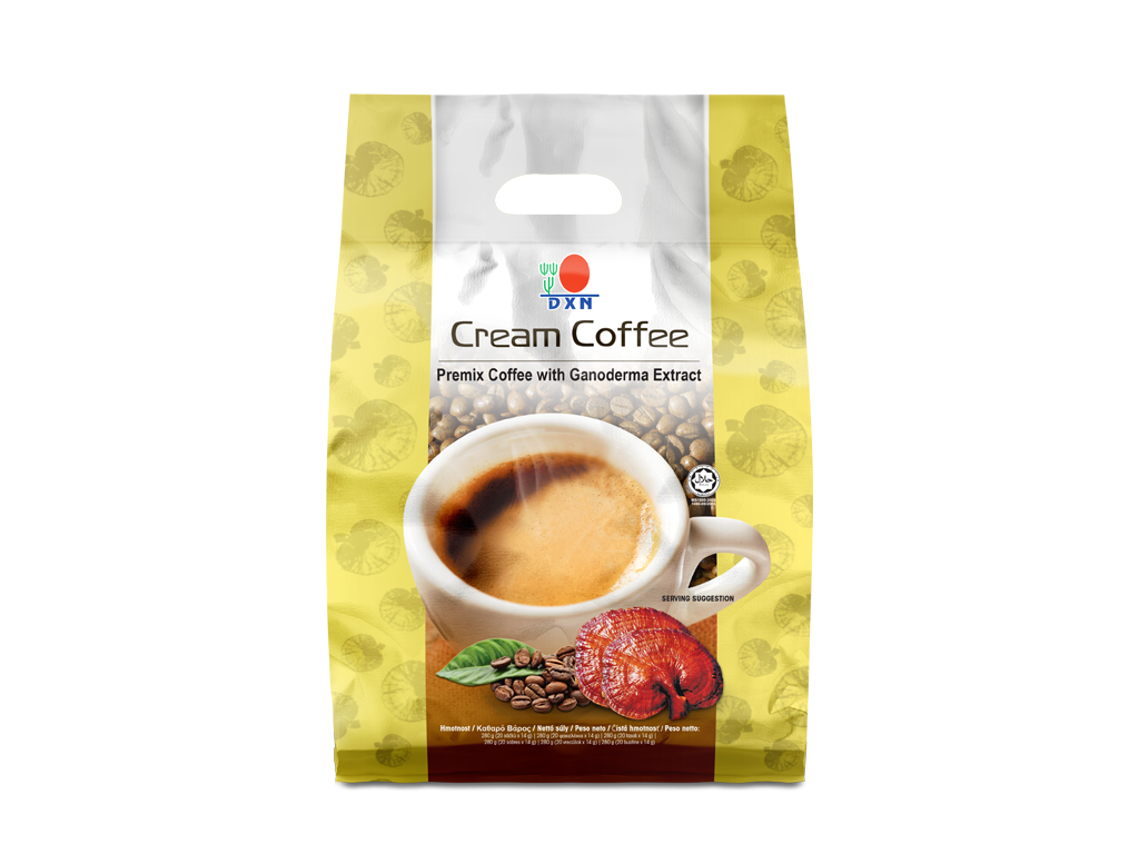 DXN Cream Coffee je harmonická zmes jemnej kávy s extraktom z huby Ganoderma lucidum (Lesklokôrovka obyčajná) a mliečnej smotany s bohatou arómou, hebkou hladkou textúrou a chuťou, ktorej neodoláte. Je bez pridaného cukru, odporúča sa tým, ktorí chcú znížiť jeho denný príjem. Každý dúšok kávy je lahodný.